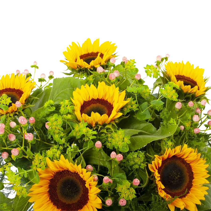 De practhige combinatie tussen zonnebloemen en groen geeft boeket zonnestraal een gezellige en zomerse uitstraling. Dit zonnebloemen boeket creëert meteen een prachtige sfeer in huis. Bovendien geschikt voor verschillende gelegenheden. Feliciteer, bedankt of verstuur zomaar dit prachtige handgebonden boeket en verras de ontvanger! * Exclusief accessoires en vaas